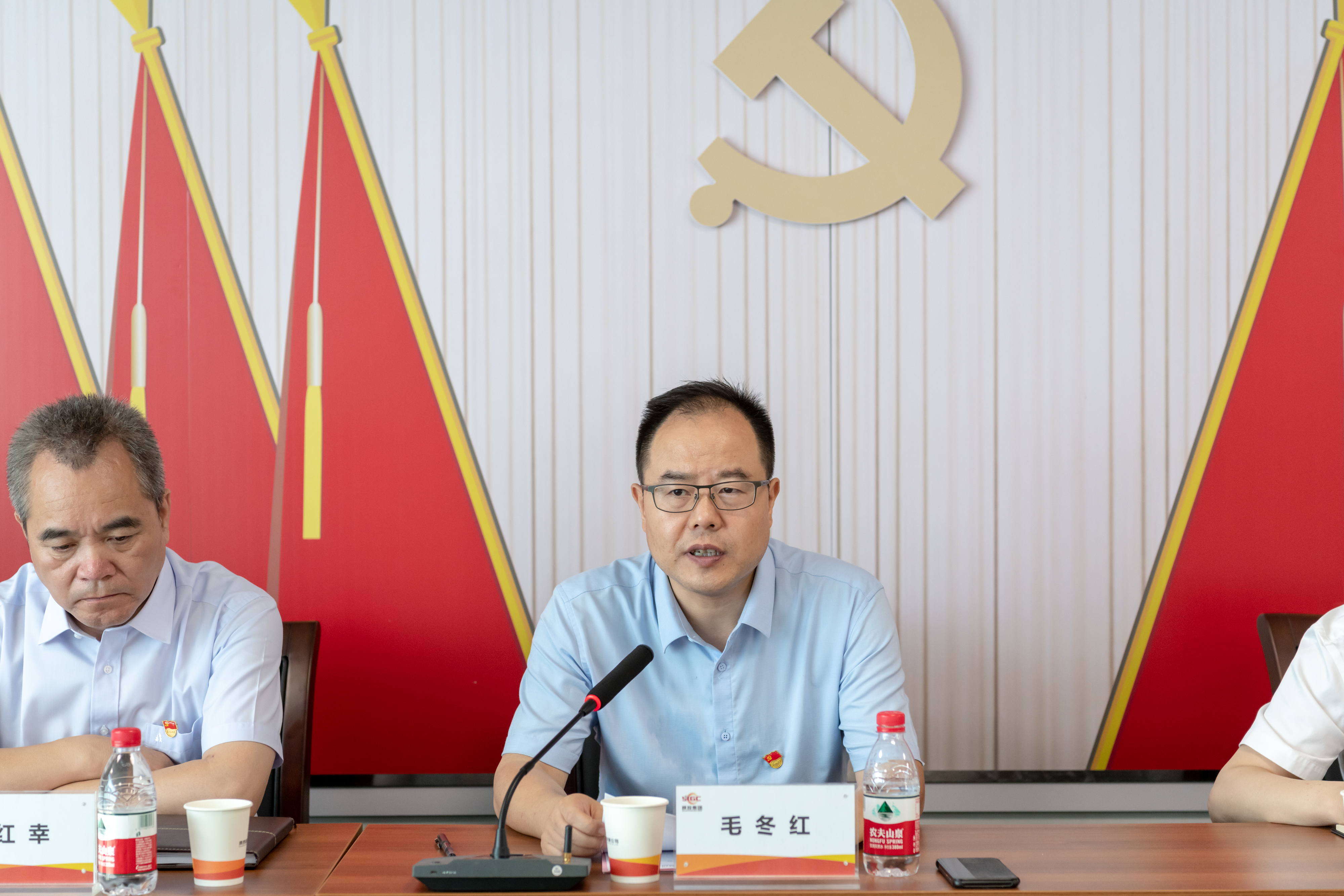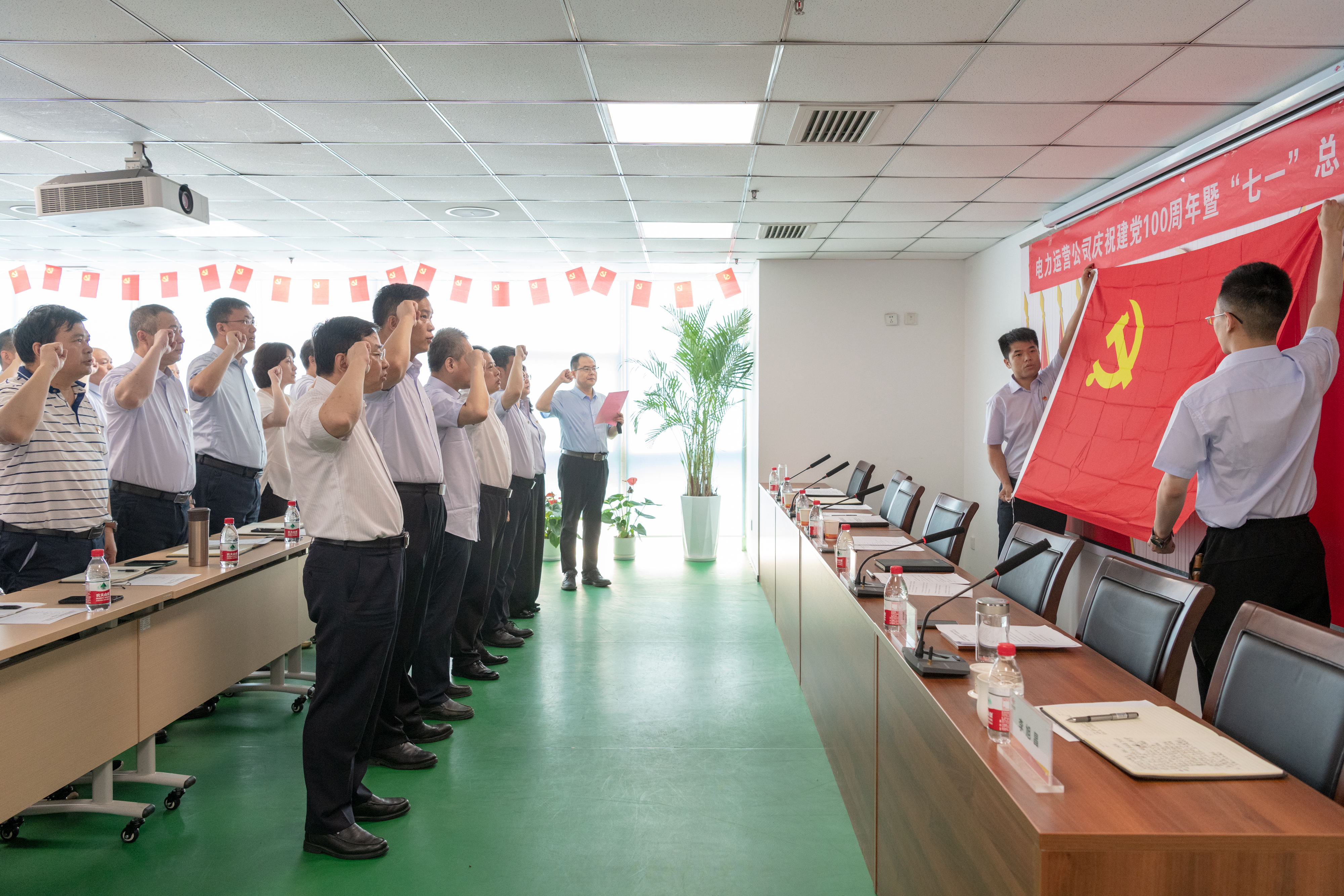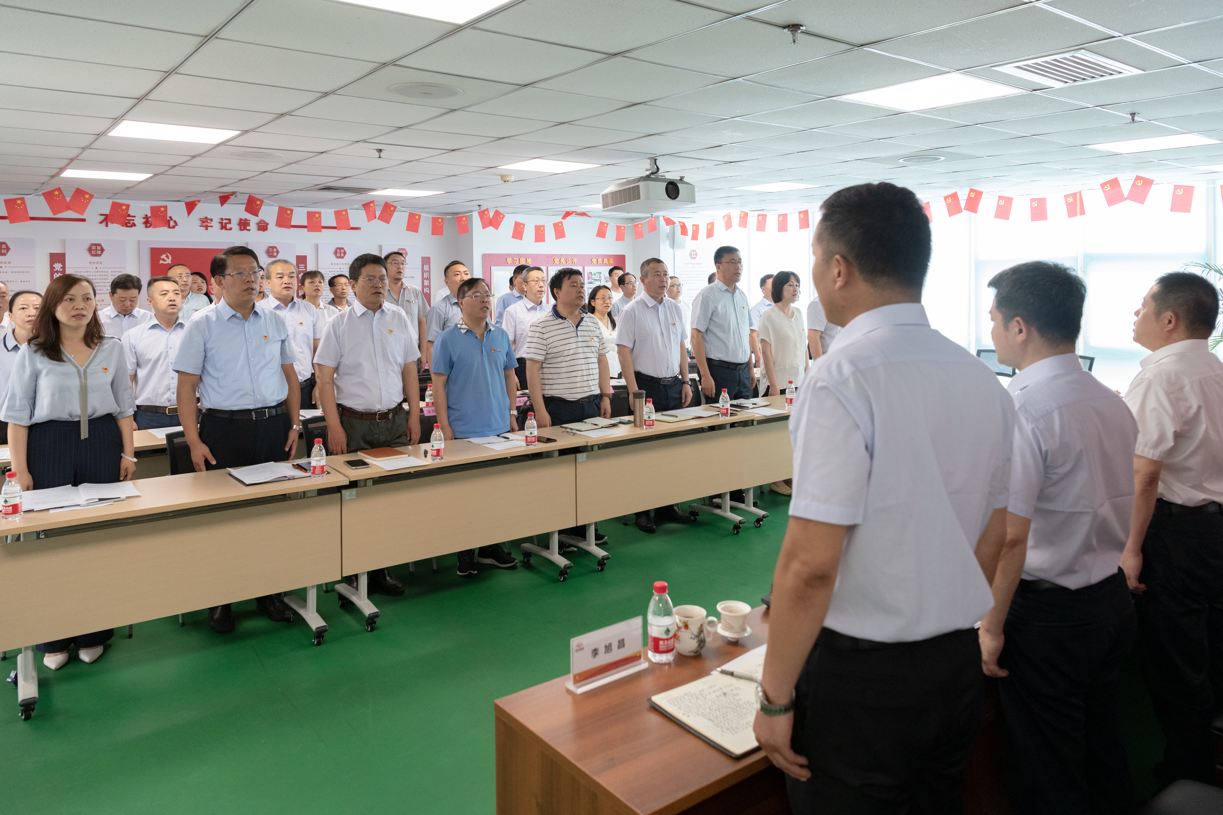 大會在全場黨員干部職工齊唱《中華人民共和國國歌》中拉開帷幕。面對鮮紅的黨旗,公司黨委書記、董事長毛冬紅帶領全體與會黨員重溫入黨誓詞,回顧對黨和人民的承諾,表達對黨的無限忠誠。