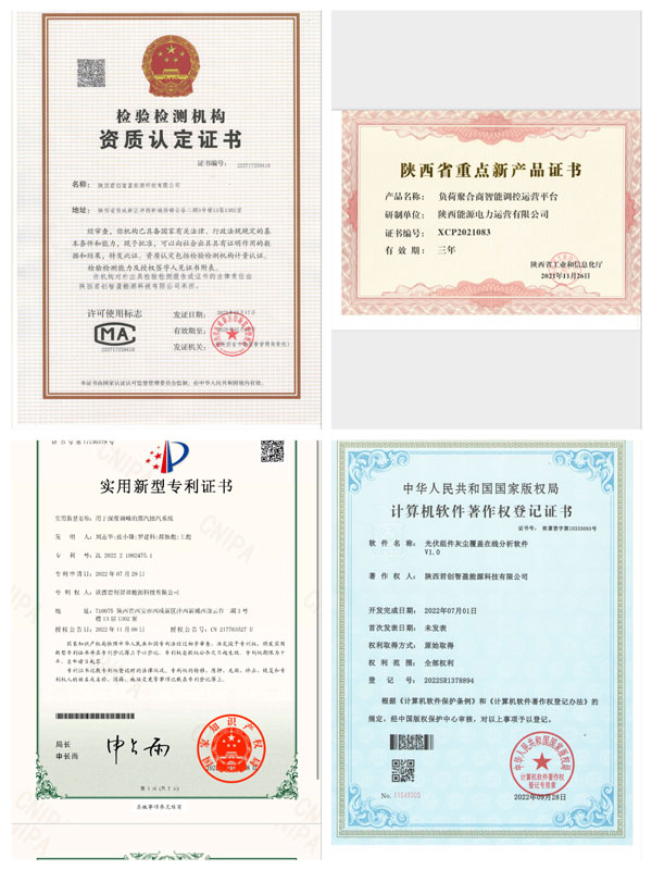 在科技創(chuàng)新上持續(xù)塑造新優(yōu)勢(shì)。1項(xiàng)成果獲得陜西省創(chuàng)新方法大賽一等獎(jiǎng)、全國(guó)決賽優(yōu)秀獎(jiǎng);1篇論文榮獲中國(guó)電力技術(shù)市場(chǎng)協(xié)會(huì)電力行業(yè)新技術(shù)應(yīng)用優(yōu)秀論文一等獎(jiǎng);參加2022年陜西省企業(yè)“三新三小”創(chuàng)新競(jìng)賽獲優(yōu)秀獎(jiǎng);同西安工程大學(xué)深入合作,2項(xiàng)成果列入陜西省2022年度重點(diǎn)新產(chǎn)品,已在新疆吉木薩爾發(fā)電項(xiàng)目落地;與西安工業(yè)大學(xué)合作,立項(xiàng)了“光伏組件灰塵覆蓋損耗在線分析系統(tǒng)及清洗系統(tǒng)”項(xiàng)目,研發(fā)出了君創(chuàng)科技首款科技產(chǎn)品。累計(jì)獲得國(guó)家專利10余項(xiàng),發(fā)明專利受理1項(xiàng),軟著授權(quán)1篇。順利取得CMA資質(zhì),成為集團(tuán)首獲該項(xiàng)認(rèn)證的企業(yè),公司檢驗(yàn)檢測(cè)水平及能源科技服務(wù)認(rèn)證邁上新臺(tái)階。成為省級(jí)科技型中小企業(yè),進(jìn)入2022年度西安市國(guó)家高新技術(shù)企業(yè)培育庫(kù),科技型企業(yè)雛形顯現(xiàn)。入駐“秦創(chuàng)原”總窗口,加入“灃西新城國(guó)企創(chuàng)新中心”,充分發(fā)揮平臺(tái)優(yōu)勢(shì),進(jìn)入創(chuàng)新協(xié)同新時(shí)代。