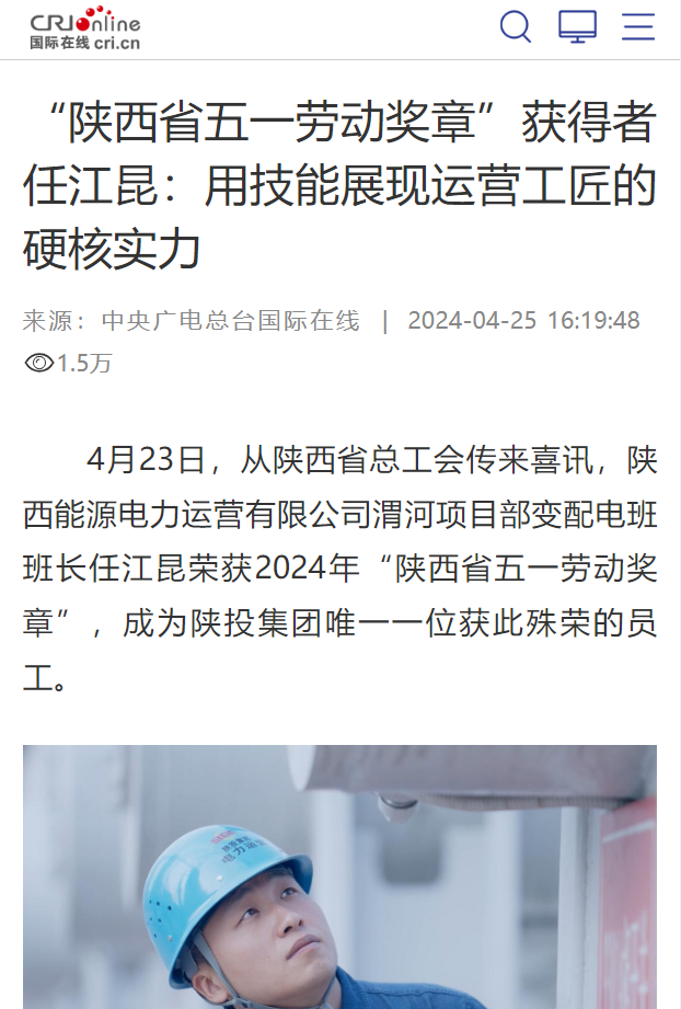 4月23日,從陜西省總工會傳來喜訊,陜西能源電力運營有限公司渭河項目部變配電班班長任江昆榮獲2024年“陜西省五一勞動獎?wù)隆?,成為陜投集團(tuán)唯一一位獲此殊榮的員工。